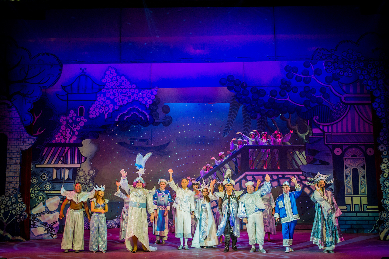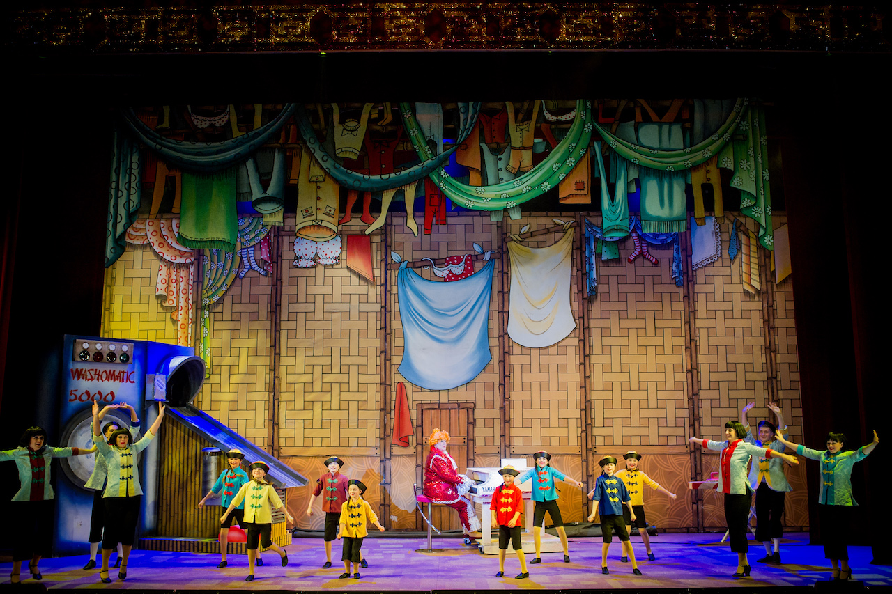 A large venue set with most scenes made up of flying scenery. Large bridge used in Village and redressed for finale. Can come with a variety of laundry scenes depending on available space